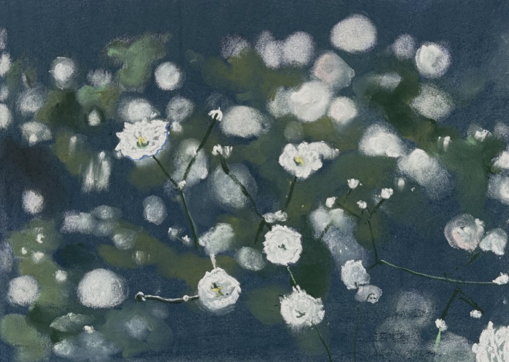 坂口恭平パステル画 霞草 No. タイトル 霞草 原タイトル 霞草 制作年月日 2025年4月23日 素材 パステル/紙 サイズ(I×w cm) 不詳 署名、裏書き等 所蔵 坂口恭平 Title Date April 23, 2025 Material pastel on paper Size(l×w cm) unknown Collection Kyohei Sakaguchi 展覧会歴 掲載歴 備考 坂口恭平(@zhtsss)、X/Twitter、2025/04/23、15:35 タグ 2025年11月2日 更新