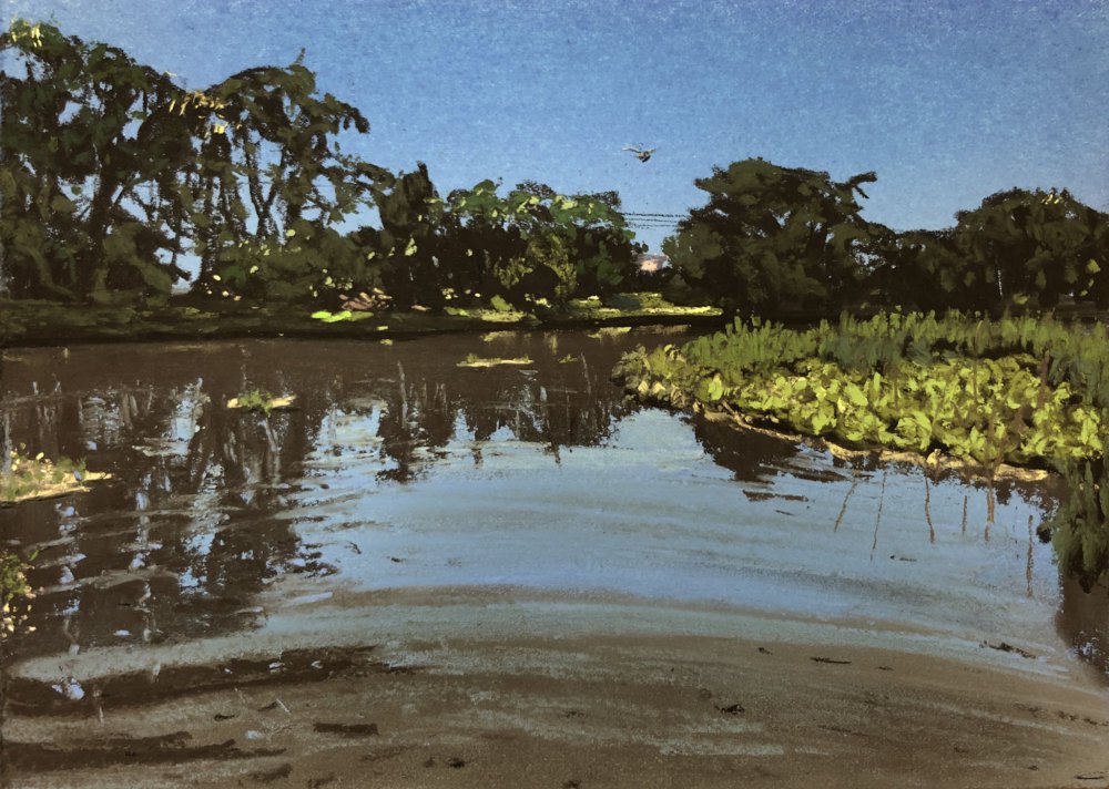 坂口恭平パステル画 江津湖に入る