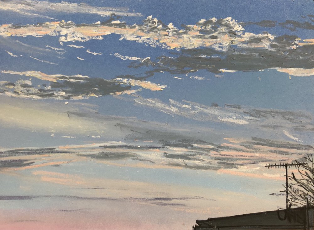 坂口恭平パステル画 夕方の畑 No. P0197 タイトル 夕方の畑 原タイトル 畑から夕焼けを見る 制作年月日 2020年10月28日 素材 パステル/紙 サイズ(I×w cm) 不詳 署名、裏書き等 所蔵 不詳 Title Date October 28, 2020 Material pastel on paper Size(l×w cm) unknown Collection unknown 展覧会歴 掲載歴 『Water』左右社、2021、p. 32 備考 坂口恭平(@zhtsss)、Twitter、2020/10/28、15:42 タグ 2023年2月11日 更新