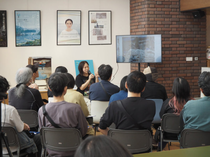 質疑応答では、来訪神リサーチに関する作品に出てくる「ワームホール」という言葉についての質問がありました。青森でのレジデンスを経て南九州に移り、青森と宮崎の言葉が似ていることや、ナマハゲのような来訪神の文化が南九州でも残っていることを知ったしまうちさん。別の地域で見たものが、遠くの地域でも観測されることに不思議な繋がりを感じ、別次元の宇宙空間をつなぐ現象の「ワームホール」に例えました。