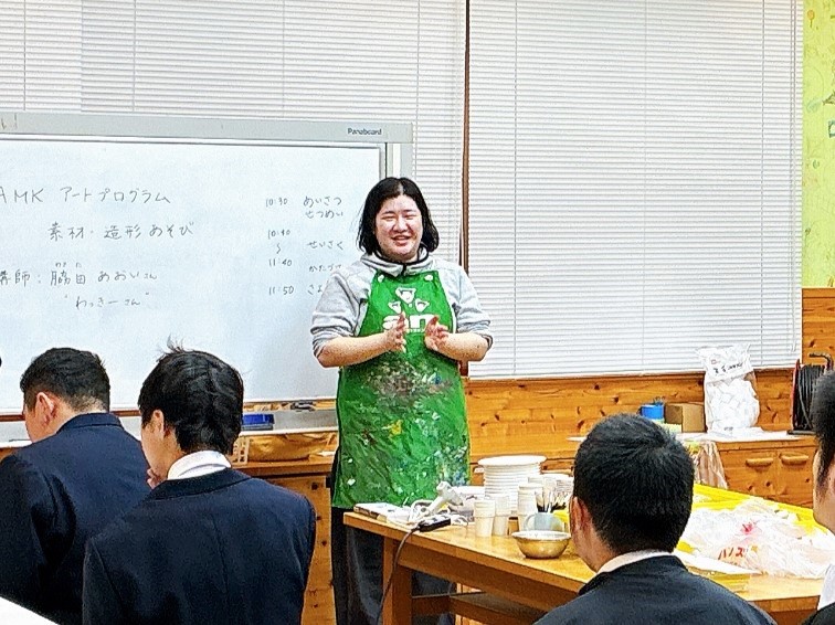平成さくら支援高等学校 木工班の1年生から3年生を対象に、わっきー先生こと脇田あおいさん(アーティスト)を講師に迎え、ワークショップ「素材・造形あそび」を開催しました。