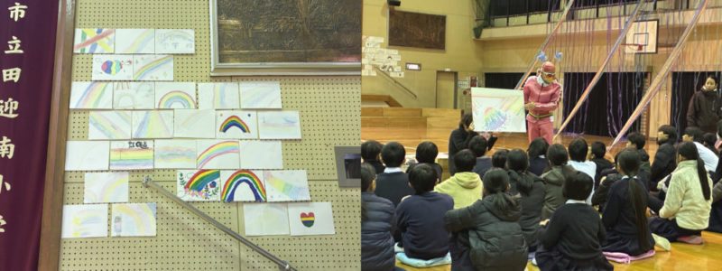 1/22(木)に田迎南小学校にて、CAMKアートプログラム「レインボーマンの虹色大作戦」を実施しました。