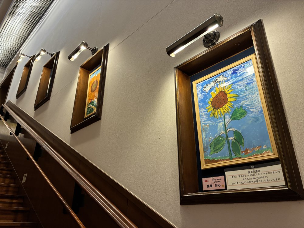 階段ギャラリーにて熊本市北区役所主催の「令和7年度 ゴッホを探せ!」絵画コンクールの展示が始まりました。