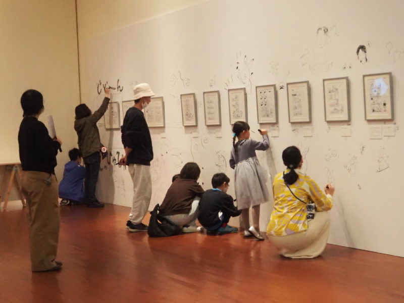1月4日(日)からギャラリーⅠ・Ⅱにて「漫画家生活30周年 こうの史代展 鳥がとび、ウサギもはねて、花ゆれて、走ってこけて、長い道のり」が開催中です。2月15日(日)には、展覧会関連イベントとして「こうのさんと壁にラクガキをしよう!」を開催いたしました。