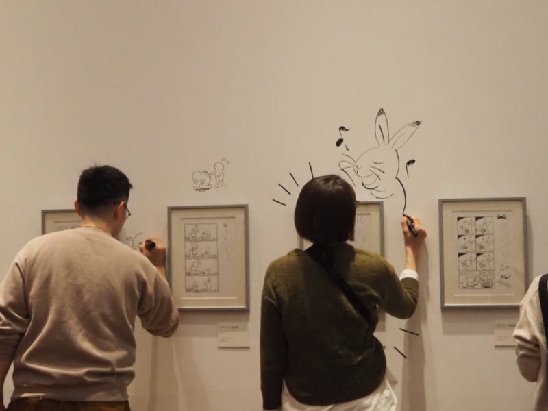 1月4日(日)からギャラリーⅠ・Ⅱにて「漫画家生活30周年 こうの史代展 鳥がとび、ウサギもはねて、花ゆれて、走ってこけて、長い道のり」が開催中です。2月15日(日)には、展覧会関連イベントとして「こうのさんと壁にラクガキをしよう!」を開催いたしました。