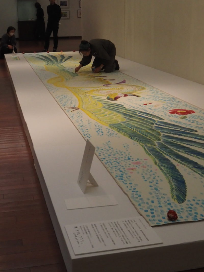 1月4日(日)からギャラリーⅠ・Ⅱにて「漫画家生活30周年 こうの史代展 鳥がとび、ウサギもはねて、花ゆれて、走ってこけて、長い道のり」が開催中です。1月5日(月)と2月15日(日)の2日間、展覧会関連イベントとして「こうのさんがライブペインティングをするよ!」を開催いたしました。