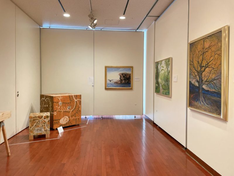国立療養所菊池恵楓園の絵画クラブ「金陽会」からは吉山安彦《黒い樹》(1989)、入江章子《ブナ林》(1990)、中原繁敏《獅子岩》(1996)を選んだ。どれも風景画だ。「私も絵を描いていた時は、風景が多かったですね。風景画が好きですね」と、こうのさんは言った。吉山安彦の絵に見入りながら、こうのさんは、「この人の絵はもっとあるんですか」と担当学芸員に聞いた。残念ながら、この作品しかCAMKには所蔵されていないとのことで、「いつか、この人の絵をたくさん見てみたいですね。そういう展覧会を見たいですね」とこうのさんは言った。