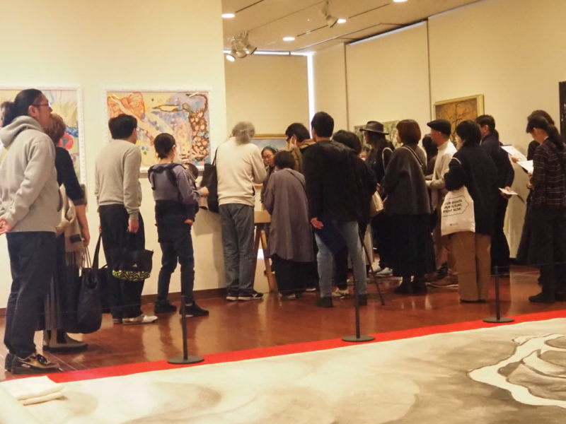 ギャラリーⅢの会場は、こうのさんと作品を囲むような感じで、参加者がたくさん集まってくださっていた。堅山南風の大きな作品と《ポロスと友人たち》が並んでいるような、「こんな組み合わせで見ることなんかないので面白い」という声が参加者から聞こえた(その方は、南風作品を子どもの頃から見慣れていてすごく詳しい人だった)。確かに、40歳の年に《ポロスと友人たち》を描いたアーティストと、80歳の日本画の巨匠の作品が、それこそ「友人」のように触れ合うほど近くにある取り合わせは、この展覧会の特徴だった。ここに集まった出品作家は生まれた時代も異なるし、活動場所も違う。でも、作品は出会うことができると感じとれる展示空間だった。