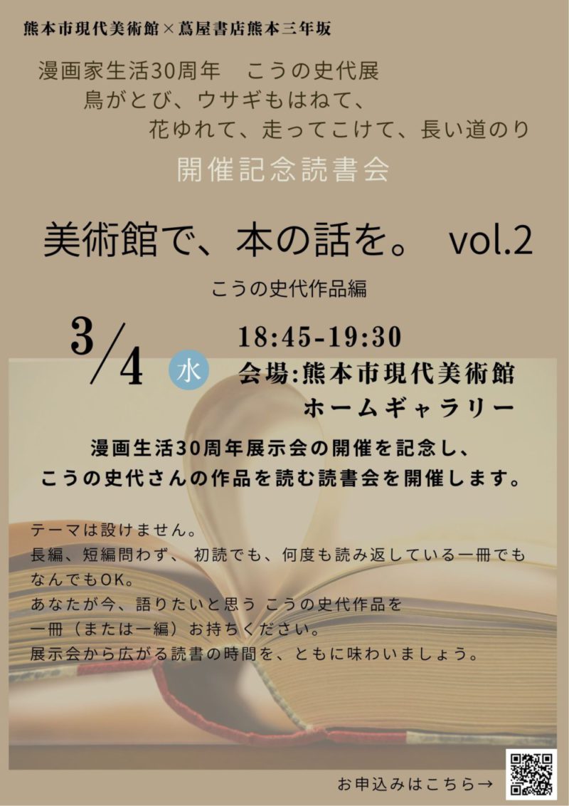 申込リンク:美術館で、本の話を。vol.2 【熊本市現代美術館 こうの史代展 開催記念読書会】 | Peatix