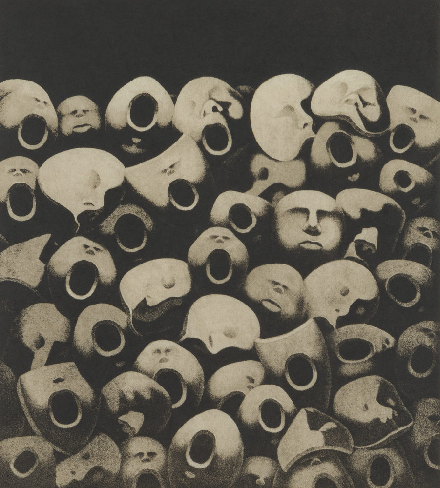 出魂(詩画集「彼岸花」)1973 エッチング、アクアチント、ドライポイント、紙、雁皮紙貼 和水町蔵 -