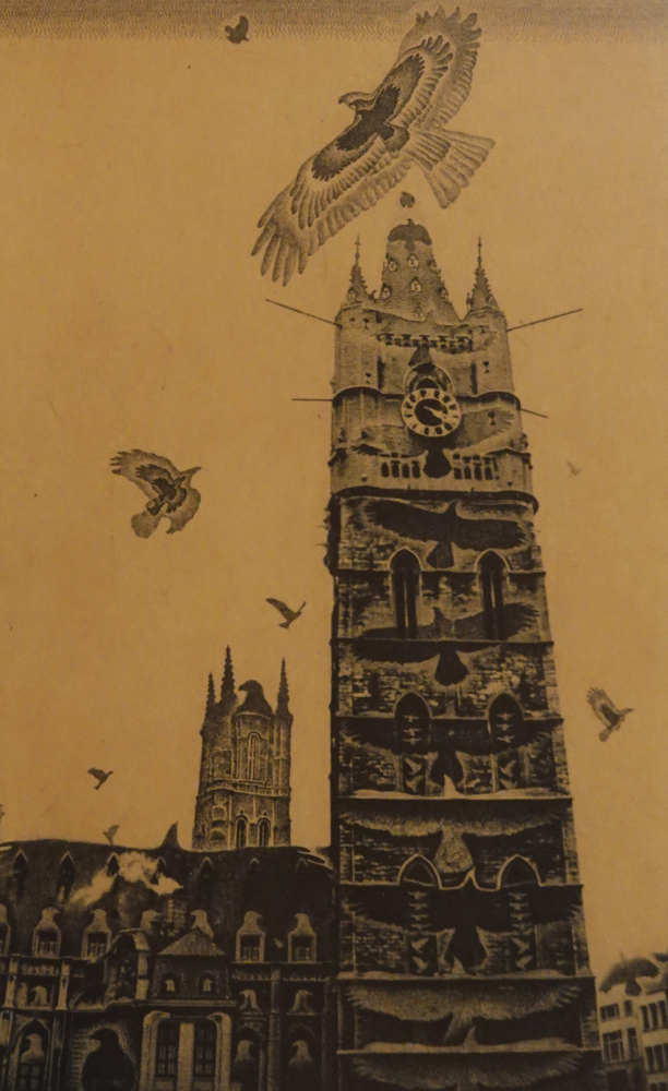 鳥と聖堂 1994 ペン、インク、ケント紙 -