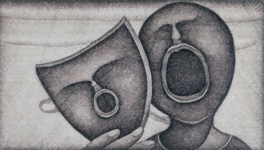 霊歌(仮面A)1962 ペン、インク、ケント紙 熊本県立美術館蔵