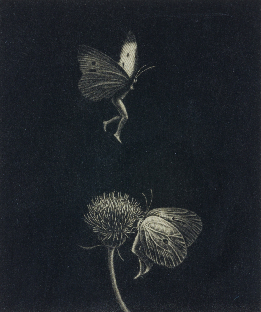 蝶(歌画集「蝶紋」) 1977 メゾチント、紙、雁皮紙貼 熊本市現代美術館蔵 -