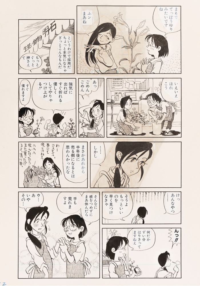 こうの史代にはアシスタントがいません。一人で描いているからこそ、その原画には「一枚の絵」としての魅力があります。一貫した愛らしいタッチと、一作ごとに異なる挑戦に溢れています。紙の上にどこまでも広がる、漫画表現の可能性をお楽しみください。
