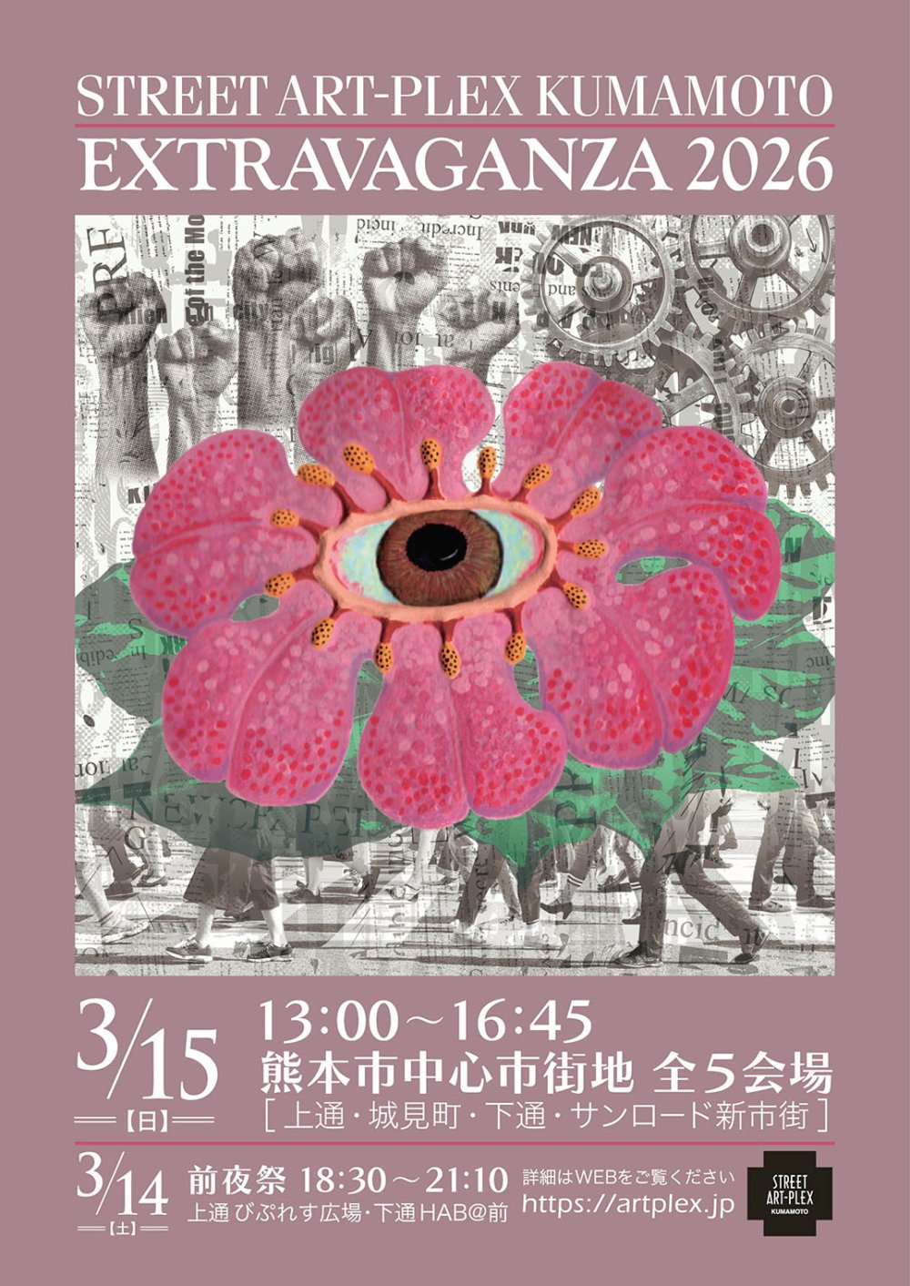 開催日 2026年3月15日(日) 時間13:00~16:45 場所熊本市現代美術館 ホームギャラリー 料金・参加費無料 ジャグリングやパントマイム、キャラクターショー、紙切りなどの大道芸、古典から現代和洋の音楽などさまざまなパフォーミングアーツを複数箇所でストリート上に展開します。前日の3月14日(土) 18:00からは、びぷれす広場等で前夜祭も開催致します。 詳しい情報はこちらをご覧ください。 一覧へ戻る