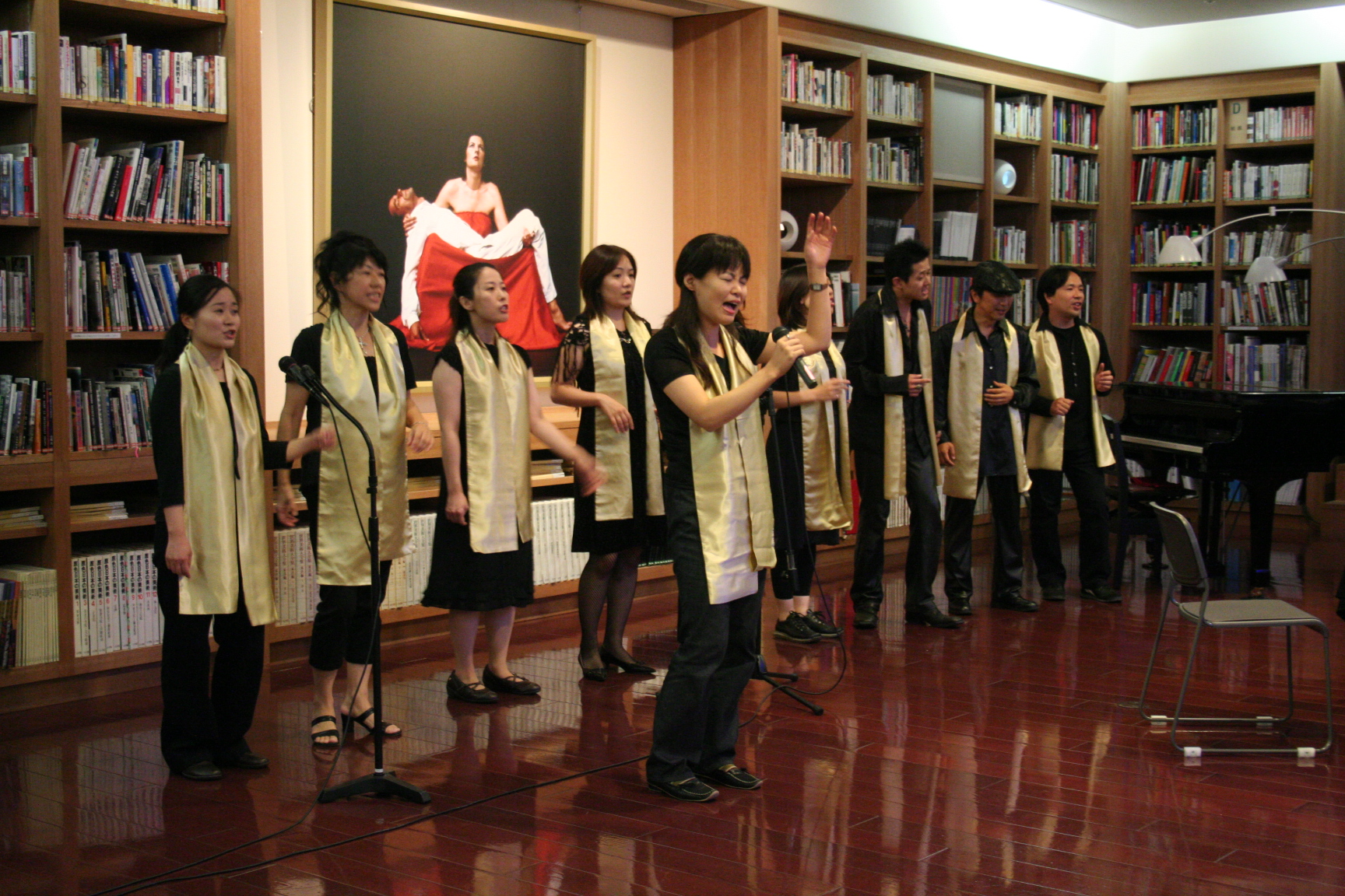 本日のフライデー・ジャム・コンサートはCRISPY DOUGHNUTS FACTORYによるゴスペルライブをお送りしました。【Oh Happy Day】などおなじみのナンバーの他、10月12日CAMKの5歳のお誕生日を記念して(そして会場の10月お誕生日の皆さん、そしてゴスペル隊のお誕生日のお姉さん!のお祝いのために)ドリームズ・カム・トゥルーの【Happy Happy Birthday】を歌ってくださいましたよ!のりのりのゴスペル隊にのせられて、手拍子の嵐につつまれた大入り満員のホーム・ギャラリーでありました。 「ゴスペル演奏、すばらしかったです!感動しました。歌い手の方々の、とても楽しそうな感じが伝わってきました。何だか、私もゴスペルをやりたいな、と、少し思いました。」(アンケートより)