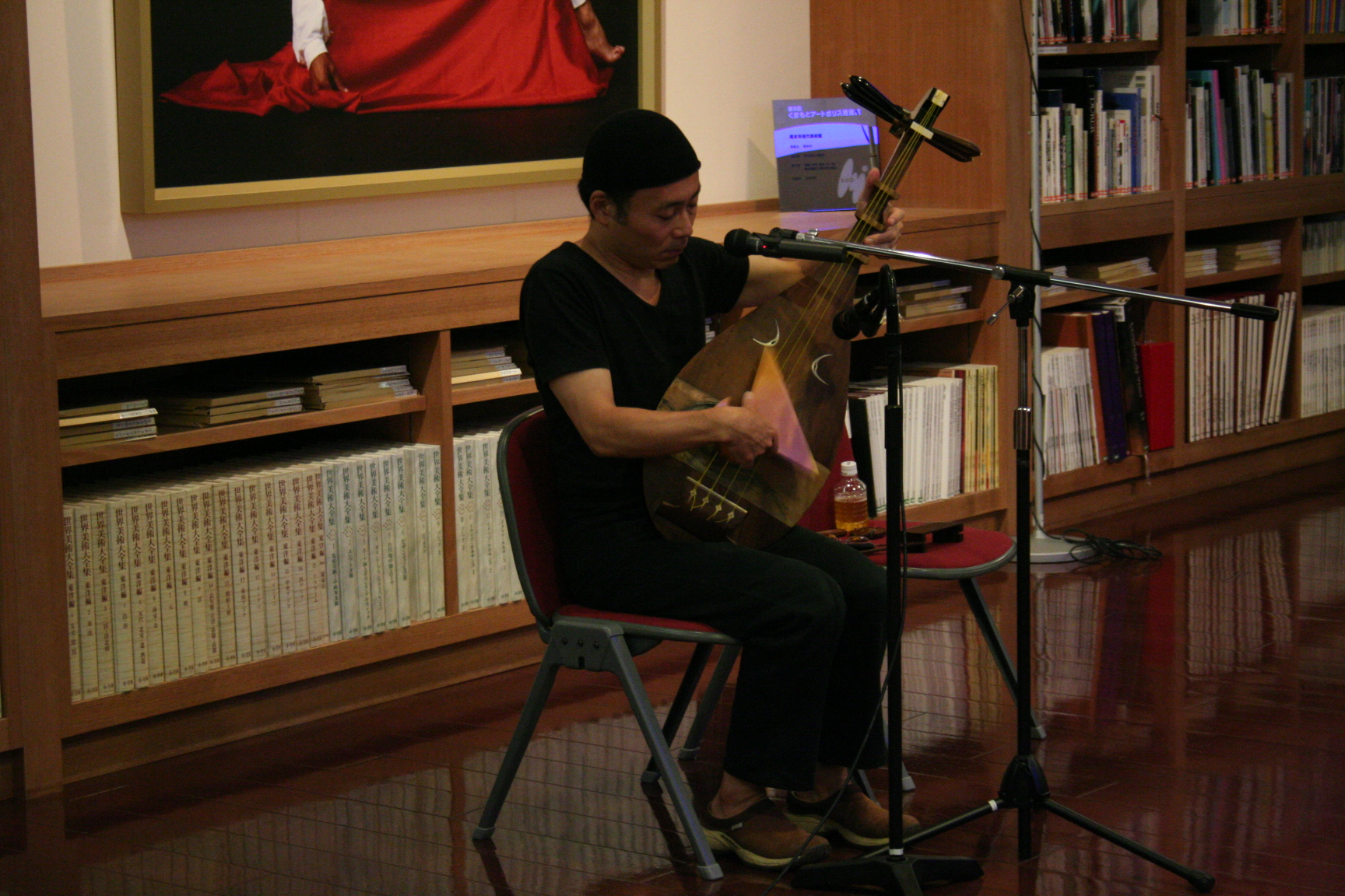 しかし、本日のフライデー・ジャムは秋らしく(?)後藤幸浩さんによる琵琶のライブをお送りしました。東京、関西と全国をまたにかけ演奏活動を行う後藤さんの演奏を前に、なにやらしーんと静まり返るホームギャラリー‥ 皆様ご存知の大長編「平家物語」から「祇園精舎」や「壇ノ浦の戦い」などダイジェストでお送りいただいたほか、「五木のこもりうた」やポップス調のオリジナル曲も披露してくださいました!本日は「琵琶の生演奏は初めて!」というお客様もたくさんいらっしゃったようですが、みなさん目を閉じて熱心に聞き入ってらっしゃいました。 「初めて琵琶の演奏を聞きました。生命のむき出しの力強さというか...(今にも途絶えそうな弱さを含んだ)とても迫力のある演奏でした。すごかったです。」(アンケートより)