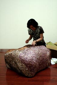 約300個の貝殻並べ、台湾の呉さんの作品150枚の展示(写真)、ラーシャ・トドシェヴィッチのテーブルに置く食器の用意、ヨーク・ガイスマールの800枚のプリントの展示などにご協力いただいています。 アーティストの素顔を見てみたい方、展示作業を見て(して)みたい方など、お気軽にお問いあわせ下さい。お待ちしています。