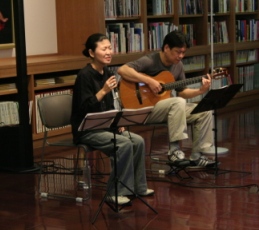 ![]() コンサートでは、ブラジルの素朴な美しさを唄った「三月の水」、ボサノバがアメリカに渡り世界的に有名になった「イパネマの娘」、広大な大地や塩田をイメージした「ミナス・ジェライス」、「塩の歌」など11曲が演奏されました。 ボサノバの音色の背景にあるブラジルの自然や文化が、展覧会のタイトル「水・火・大地」とも響きあうたいへん素敵なコンサートになりました。