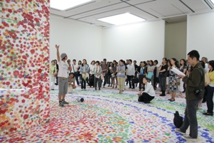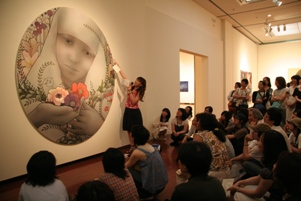 第1部は、大巻伸嗣さん、蜷川実花さん、名知聡子さんの3人と司会の当館館長桜井武によるトーク。 たくさんの人にお集まりいただき、若手作家3人の制作への想いや本展の感想、熊本でのこぼれ話なども飛び出す楽しいひとときとなりました。 ![]() ![]() 第2部は、名知さん、大巻さんおふたりによる本展出品作品の前でのトーク。 直接作品を見ながら知る作品へ込められた意味など、この場所でしか聞けないトーク内容に来場者のみなさんも大満足のご様子でした。 ![]() ![]() |