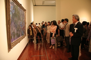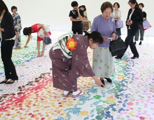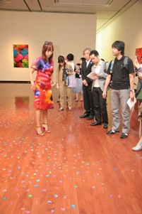 ![]() ![]() 開会式後に行われた内覧会では、作家それぞれの花・風景の世界をたくさんの出席者の方に楽しんでいただきました。 ![]() オープニングレセプションのドレスコードは『花』でした。華やかな装いのみなさん。 |