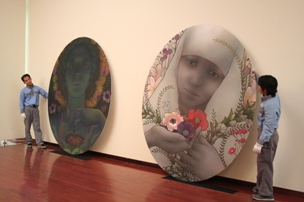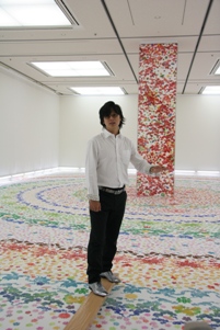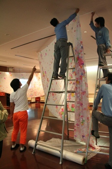名知聡子さんの新作も完成に近づき、作品の展示作業が行われました。 |