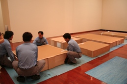 「花・風景」展 クロード・モネの作品を展示作業中です。