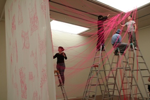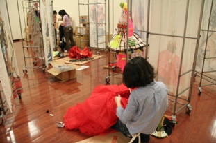 また、出品作家である手塚愛子さん、齋藤芽生さん、ひびのこづえさんも来館し、後半の<アートとテキスタイル>の展示も完成に向かっています。