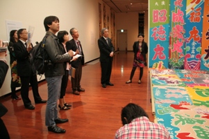展覧会開幕を明日に控えた4月9日、「祝祭と祈りのテキスタイル」展記者発表及び開会式が行われました。