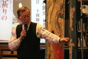 「江戸の幟旗」というタイトルの付けられたこの講演会では、北村さんと幟旗との出会いや収集への決意、また、幟旗とそこに描かれたモチーフに込められた民衆の祈りや願いについてなど内容は多岐に渡りました。