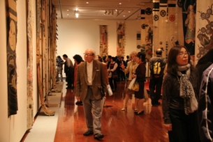 また、夕方からはオープニングセレモニーが開催され、開会式後に行われる内覧会では、多くの方に展覧会をご鑑賞いただきました。総作品数280点という布を素材とした多種多様な表現に、皆さんじっくりと作品を向き合いながら時々感嘆の声を上げられているのが印象的でした。