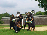今日の熊本はあいにくの雨。熊本城天守閣前で予定していた撮影を、現代美術館内に移して、ワークショップをスタートしました。