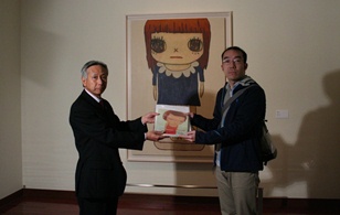 記念すべき2万人となったのは、現代アート好きで、たくさんの美術館を巡られている福岡の30代男性、山内さんでした♪奈良美智さんの10年来のファンということで、記念品の奈良美智展のカタログも大変喜んでくださいました。 また、「九州で唯一の現代美術館で、大好きな奈良さんの展覧会の2万人目になれたことは、嬉しい」展覧会については「震災後に作られた作品からは女の子のなんともいえない表情の変化が感じられた」とのコメントもいただきました 贈呈後には、担当学芸員による解説付きの会場案内が行われました。 |