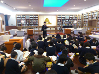 熊本市の力合小学校の6年生175名が、奈良美智展の見学に来てくれました。熊本市の一番南部の小学校だけあって、美術館に初めて来たという子も多数。4グループにわかれ、フリーゾーンと奈良美智展を学芸員といっしょにじっくりと見てまわりました。バス4台に分乗し、県美と合わせての見学、本当にありがとうございました!(^^)!