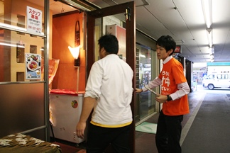設置作業はもうみんな手慣れたもの。 柱だろうと高い所だろうと、連携プレーであっというまに完了! うわさを貼ったあるお店からは、お客さんに大好評なのでうわさを追加してほしい、といううれしいお願いも もちろん追加させていただきます! まちの盛り上がりを追い風に明日からももりもりがんばりますよー!! |