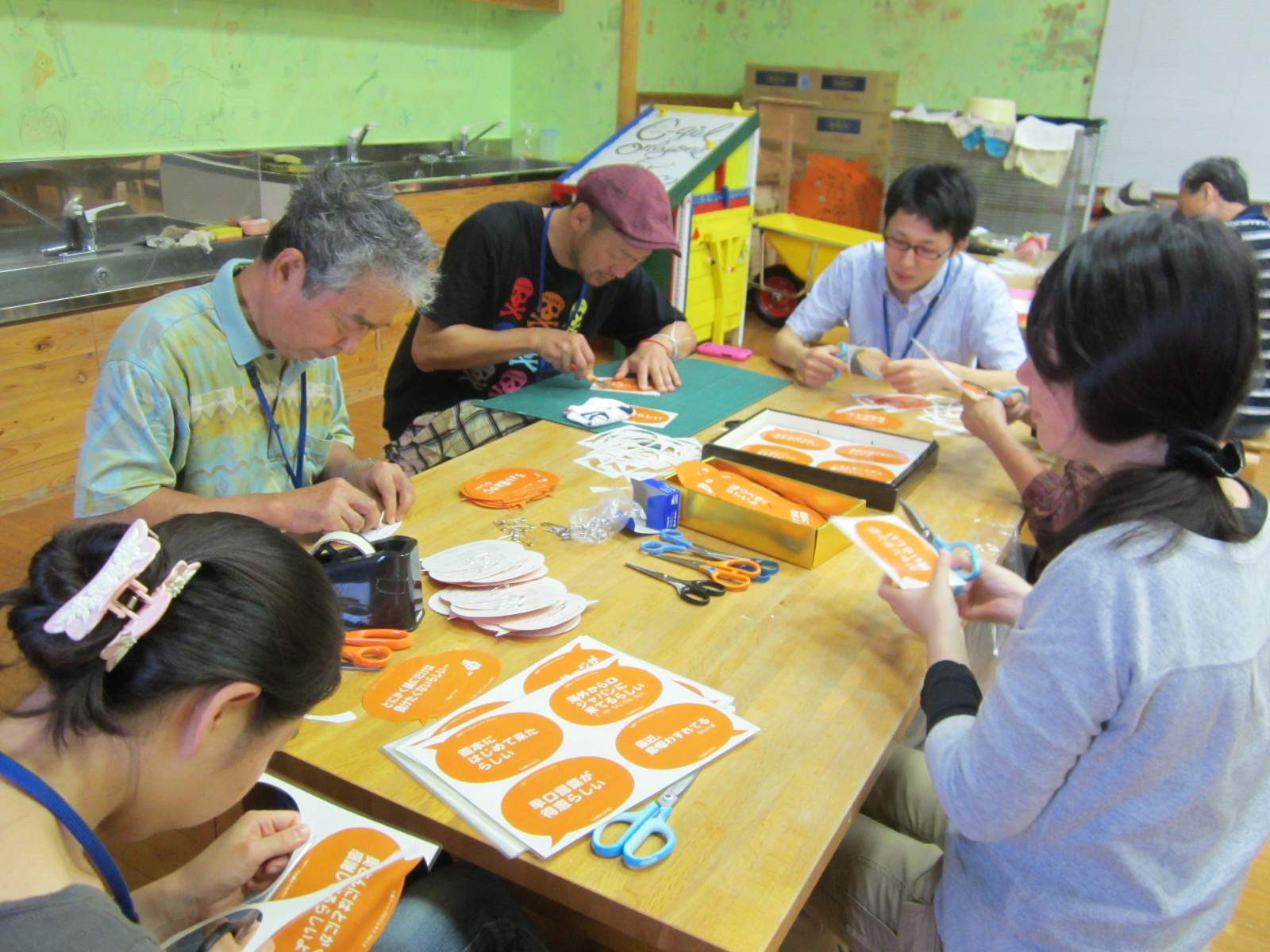 10/12(土)、熊本市現代美術館11年目の開館記念日イベントで、うわさバッジ&うわさみくじがびぷれす広場に登場しました。