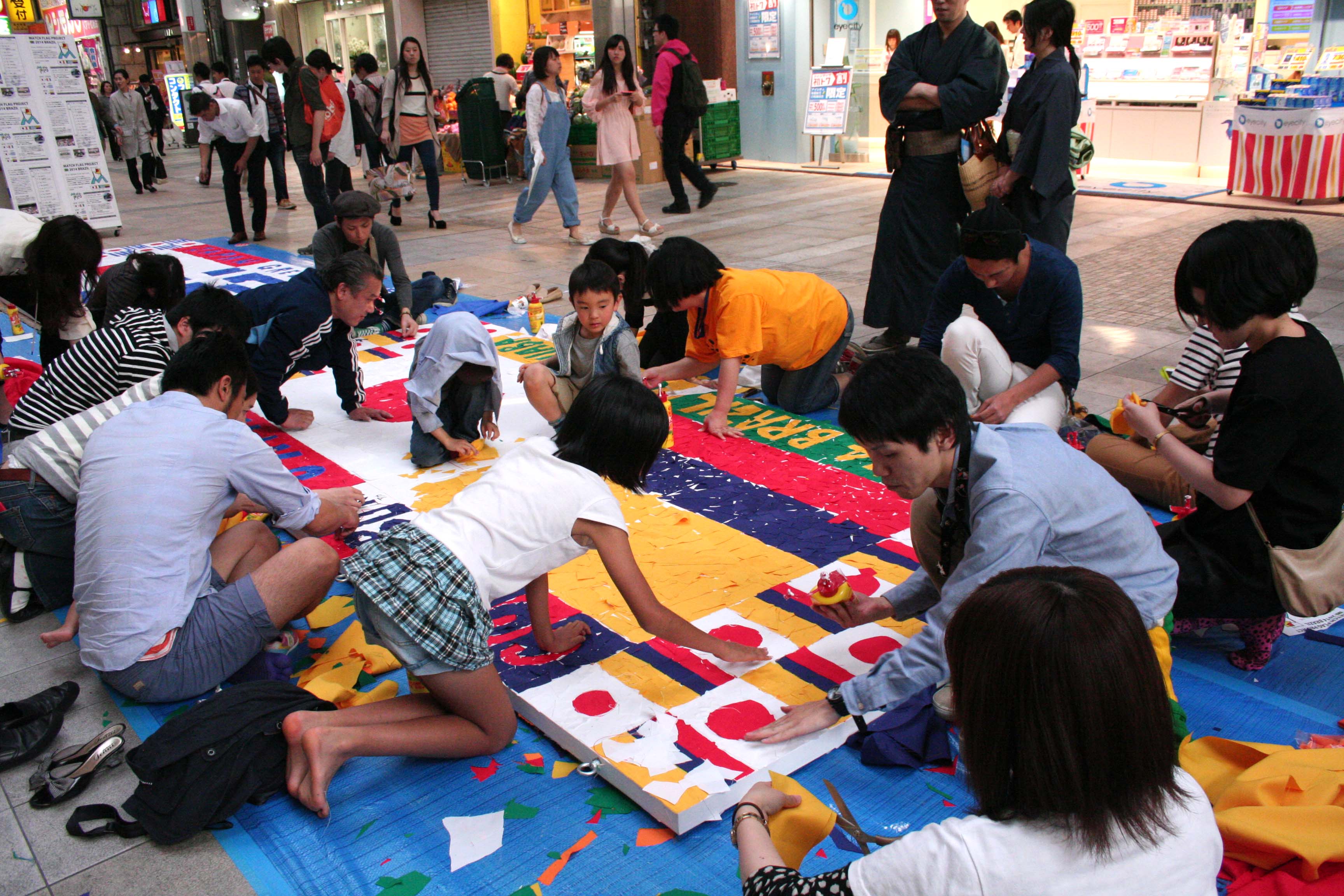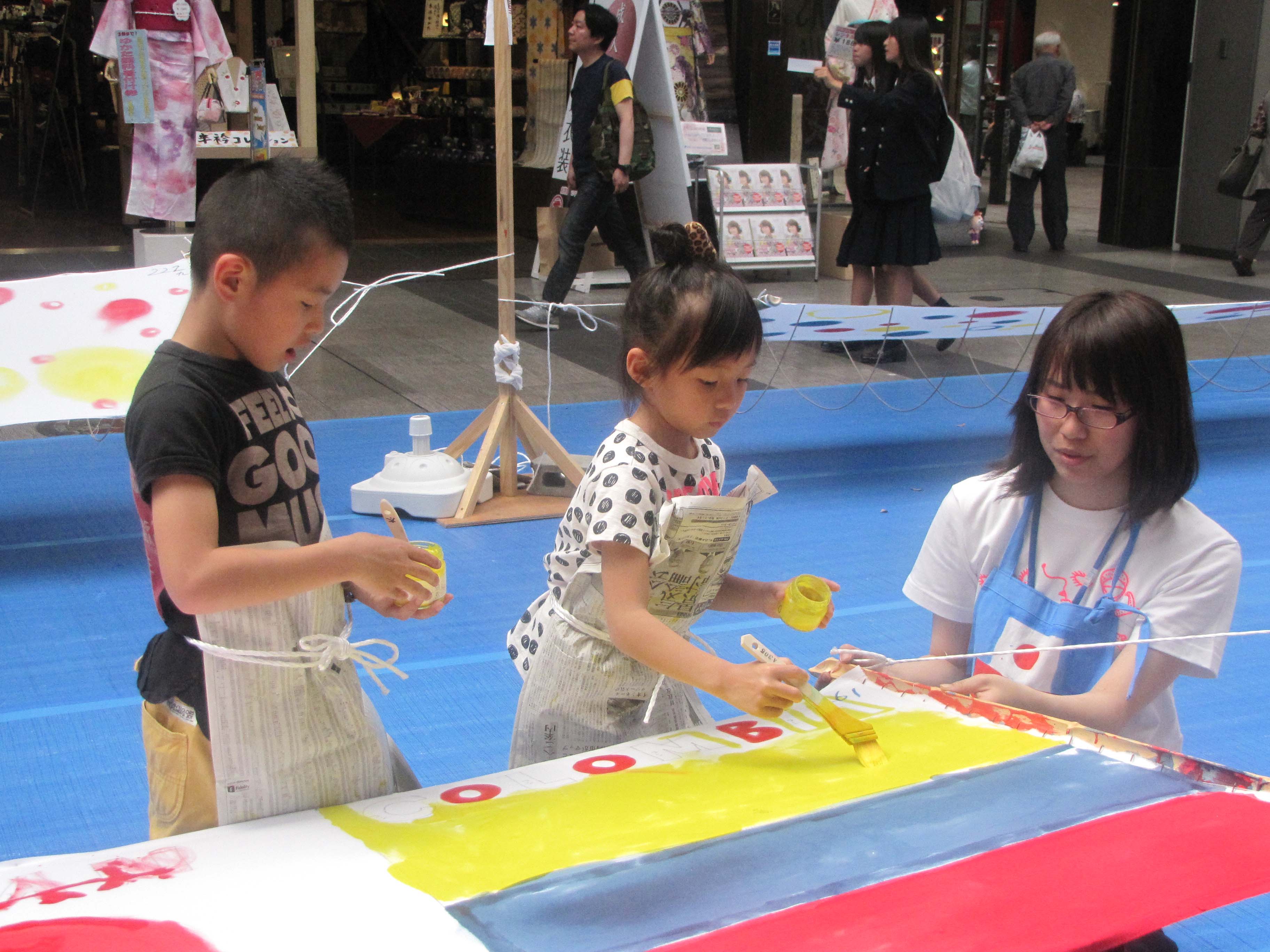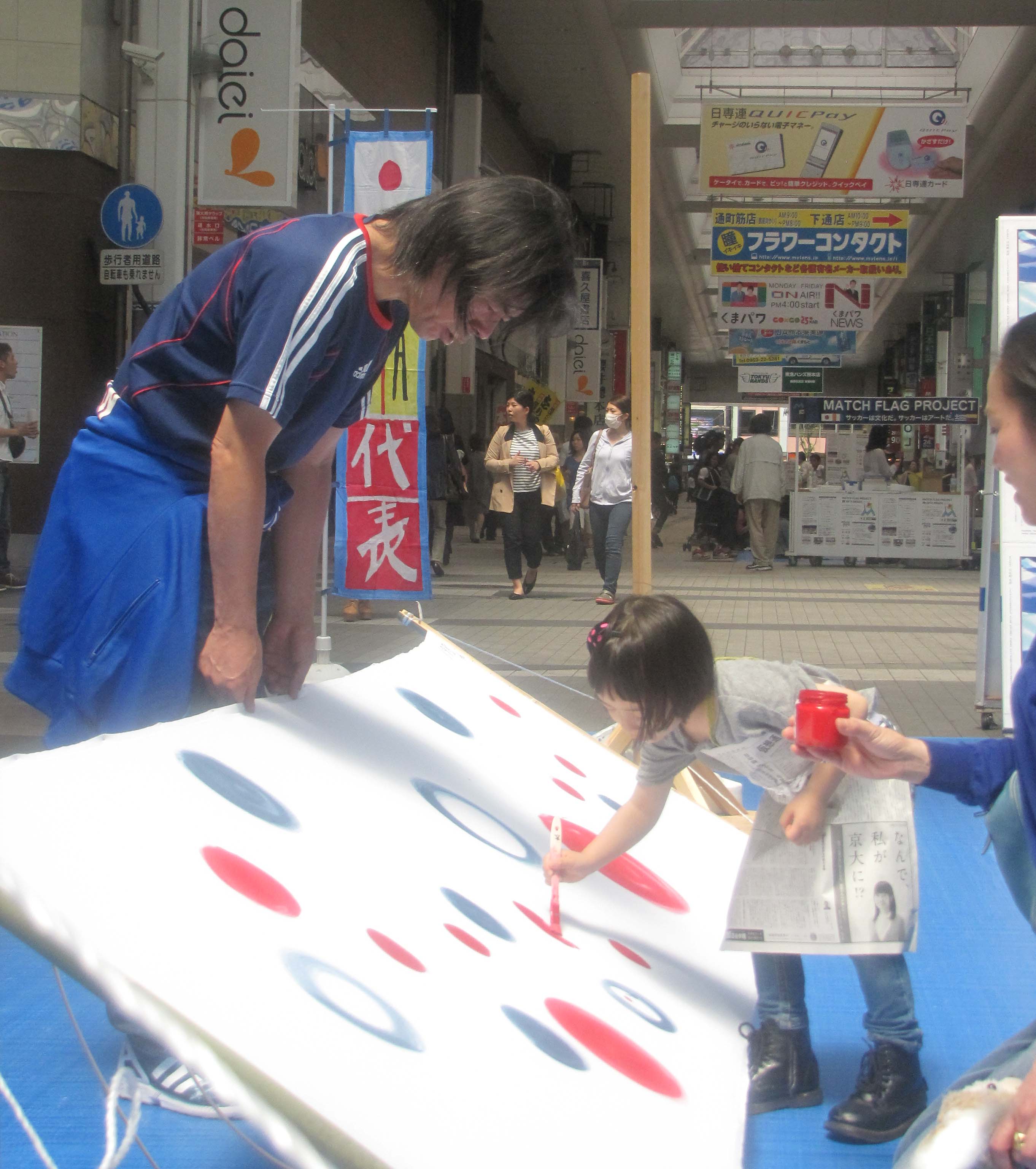 下通アーケード内でマッチフラッグ制作ワークショップが行われました。