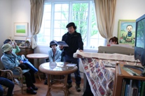 霧がたちこめる中、葉祥明阿蘇絵本美術館に到着。葉山祥鼎館長のお話しを伺い、館内を見学しました。美術館は、葉祥明さんの絵本からそのまま出てきたような外観。その中に、葉さんの原画などが並んでいます。
