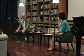 RKKアナウンサーの本田史郎さん、福島絵美さんによる文学作品の朗読イベント「お話し玉手箱LIVE 」を開催しました。第11回目になる今回の演目は 「字のないはがき」(向田邦子)、「鼻」(芥川龍之介)、「寄姫物語」(熊本の伝説から)です。「字のないはがき」では、ハガキを巡る家族の思い出の回想を、福島さんが柔らかな声で読み上げました。不器用な父親の姿、妹への想い、戦時中の困難な生活、字の無いハガキがつなぐ家族の絆。いくつもの思い出がつまった文章は大仰な表現はありませんが、せつせつと聞き手の心に訴えかけます。福島さんの少し抑えた、しかし優しさをにじませた朗読が向田邦子さんの文章にぴったりでした。 芥川龍之介「鼻」は、古典を題にとって翻案した短編小説ですが、大正の当時にも、そして現代にも通じる人間心理が鋭利に描かれています。滑稽味と諧謔も併せもつ明晰な文章の魅力を、朗々とした、時に剽軽な本田さんの朗読が深めます。多くの人に読まれている名作ですが、朗読として聴くと、文書を読んだ時とはまた違う味わいを感じます。 最後は「寄姫物語」。開催中の「水・火・大地」展に合わせて、白糸の滝にまつわる昔話が朗読されました。語り手は本田さんと福島さん。背景には本田さんが撮影した映像を投影するなど演出も凝っています。兵部と寄姫の悲しい恋の物語に、会場の皆さんが聞き入っていました。 次回のお話し玉手箱は7月開催予定です。 どうぞお楽しみに! |