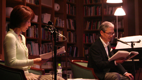 RKKアナウンサーの本田史郎さん、福島絵美さんによる文学作品の朗読会。第6回目を迎える本日のお話し玉手箱ライブは、葉祥明「母親というものは」、熊本の昔話「ねこ岳のはなし」、芥川龍之介「杜子春」の3本が朗読されました。いつも季節や展覧会に合わせた演目を選んで頂いていますが、来週の母の日を前に、母親への思いのつまった詩を聴いて、自分の母への思いを見つめなおした方も多かったようです。「ねこ岳のはなし」は、阿蘇の山それぞれの性格が伝わってくるような語りでした。「杜子春」はその壮大なドラマに引き込まれていきました。 毎回のことながら、作品は朗読によって彩りを増し、新たな発見があります。今日の80名強の来場者の方々からも楽しいひと時であったとの感想を頂きました。 次回のお話し玉手箱は、小泉八雲の生誕160年・来日120年を記念する「へるんさんの秘めごと」展に合わせた演目です。 7月17日(土)14:00〜14:45 小泉八雲「耳なし芳一」、「雪女」の予定。 当日はゆかた祭りで、浴衣の方は企画展入場料半額ですので、皆様どうぞ浴衣でご来場下さい。お待ちしています。 |